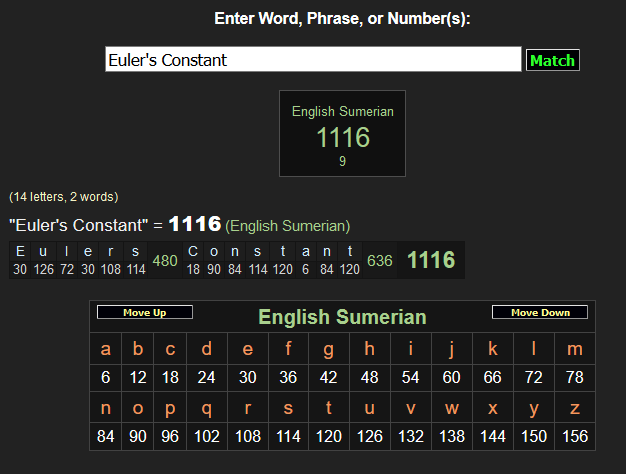 And also ‘Euler’s Number’ is the same value with the same cipher: