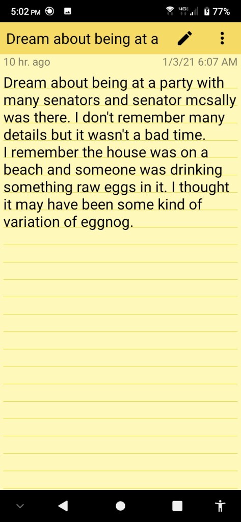 The next dream featured a house full of senators which seemed be be some kind of party where I noticed former Arizona senator Martha McSally: