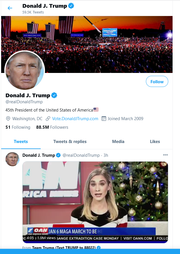 And after looking up Trump’s Twitter handle just to see if there was anything of interest I noticed that the most recent tweet, published as of three hours ago as of the time of this writing, had a video promoting a Make America Great Again March which had a length of 4:10. So here we see the magic 410 appearing once again. 410 is my birthday and continues to appear throughout time and space in the most amazing ways. So my name didn’t appear in the video but the digits of my birthdate and this magic number appeared: