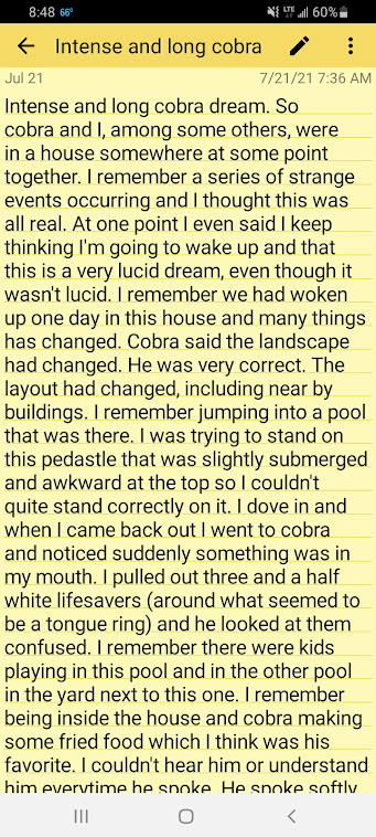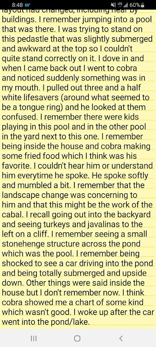 There was another long dream with Cobra that was filled with symbols and events and it happened the same morning that he posted a coded message: