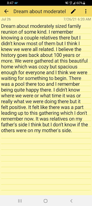 And for the first time ever I had two family reunion dreams: