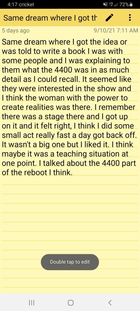 And I will include a dream where I was talking to someone about the tv show ‘The 4400’ which is about a group of regular people taken from various time periods in a blue sphere of light and returned with abilities to help save planet Earth from an evil Cabal which includes a man who is obviously supposed to be Bill Gates. It told me to write a book but I don’t know about that. I think it was just an article that needed to be written possibly.