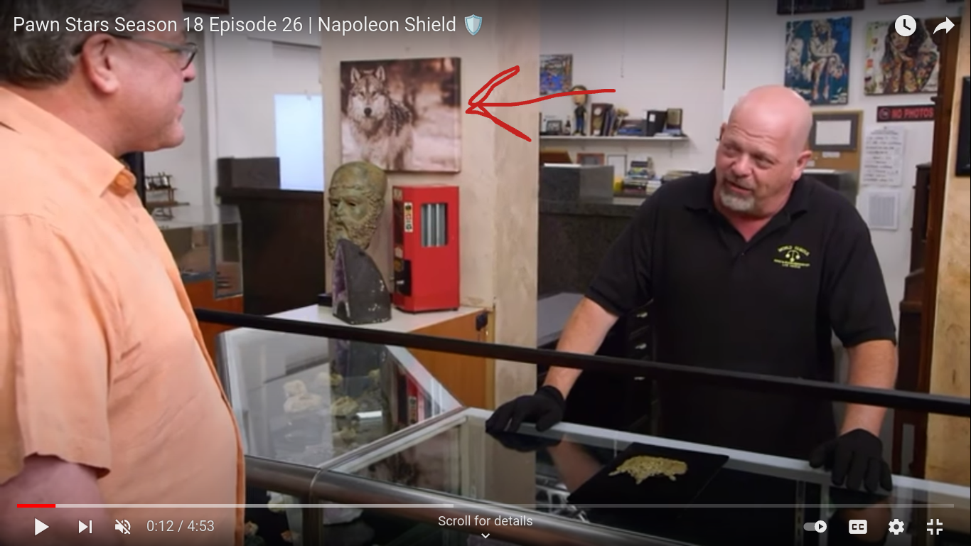 Another quick example is when I went to watch a clip of Pawn Stars on YouTube and there was a photo of a wolf on the wall behind Rick: