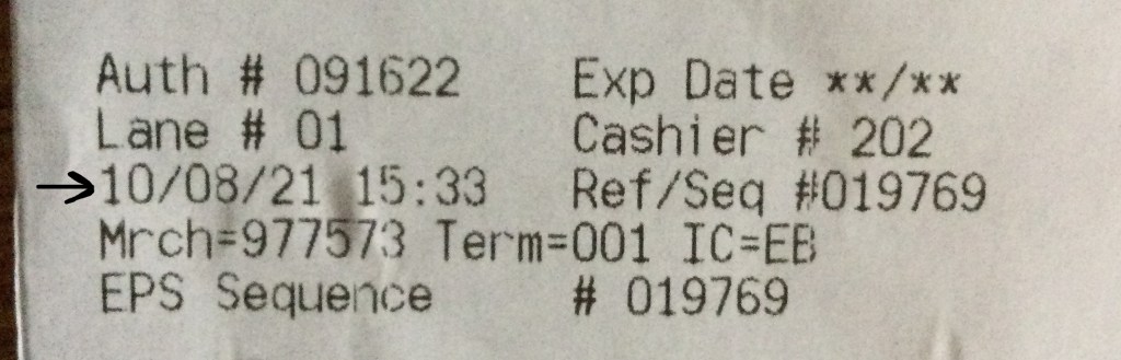 So on to the next part of this synchronicity. I walked to the store yesterday, October 8th, and got some things and realized that I was going to checkout at 3:33 PM (15:33 in 24-hour time) and this is what reflected on my receipt. This was totally unintentional, which is the nature of synchronicities. You don’t have to try to make them happen, they just happen: