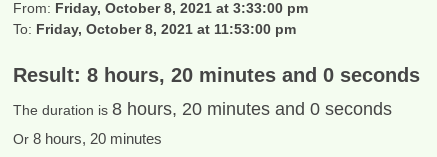 The amount of time that passed was exactly 8 hours and 20 minutes: