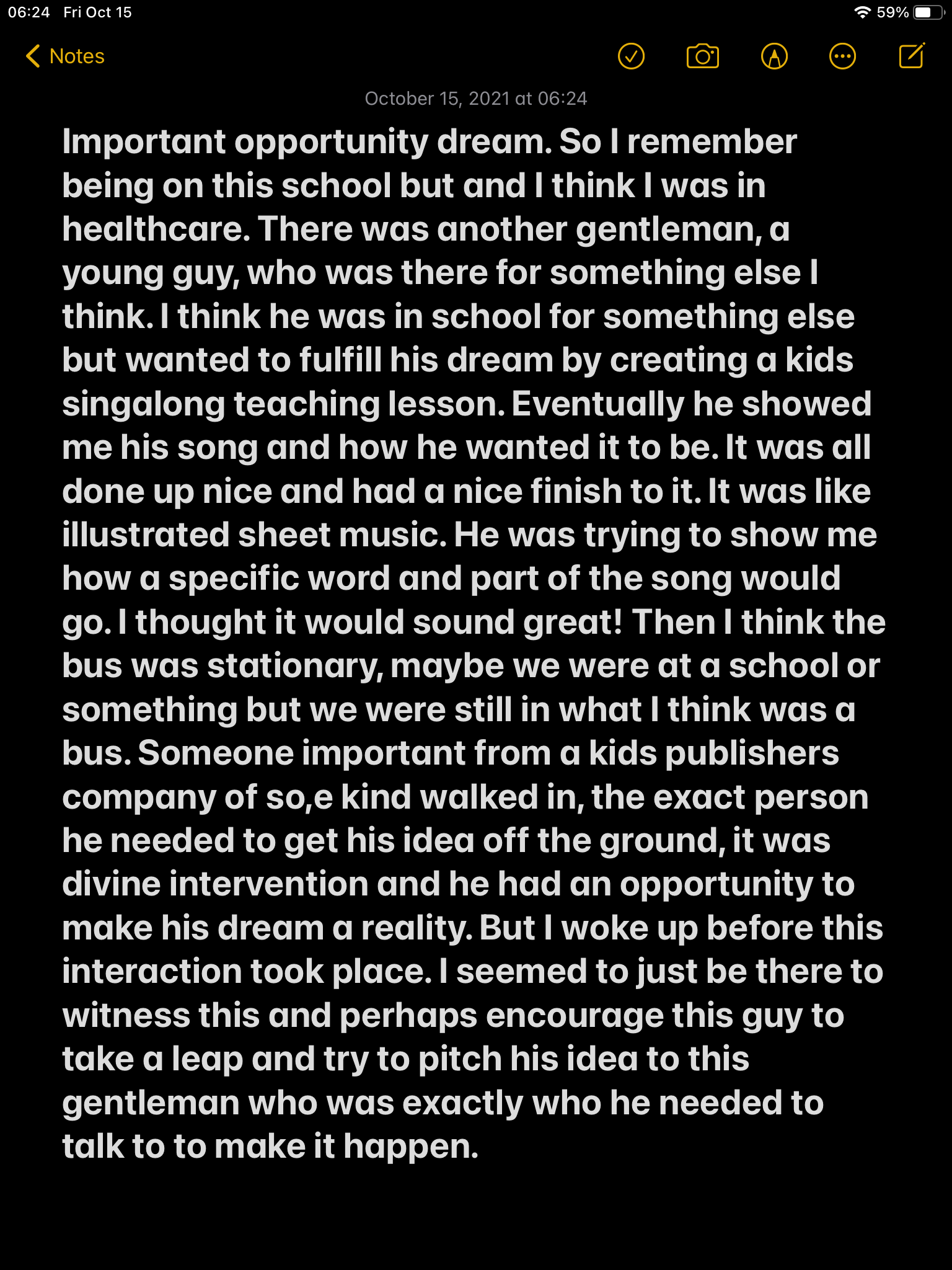 Important opportunity dream. So I remember being on this school bus and I think I was in healthcare. There was another gentleman, a young guy, who was there for something else I think.