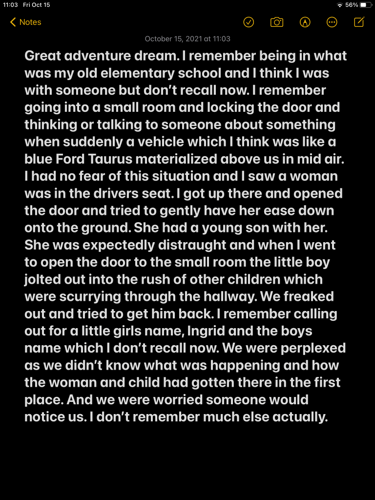 Great adventure dream. I remember being in a what was my old elementary school and I think I was with someone but don’t recall now.