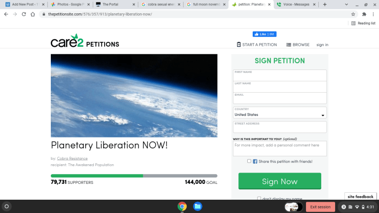 In the most recent dream included above I saw that I was not getting credit for something I did or something like that. And this might just be a coincidence but someone posted the link to contact the petition website as the petition had been taken down twice. I filled out the form demanding that an explanation be provided as to why it is not available and then not long after that the petition was reinstated and is available as of the time of this writing: