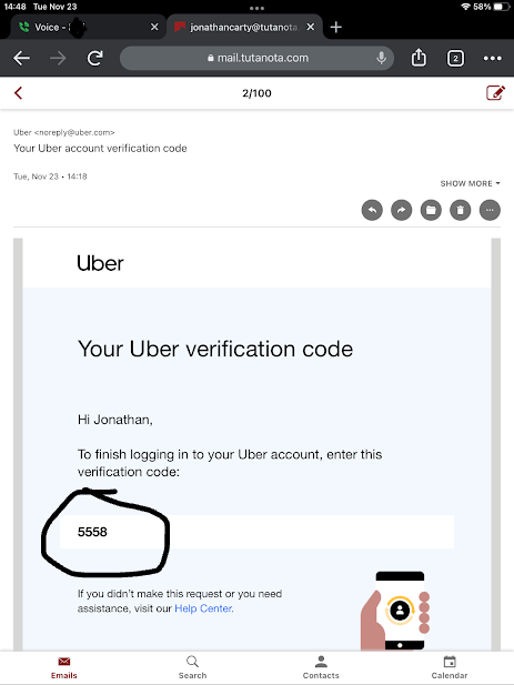 Very interestingly, I went to sign up for Uber and I was given the confirmation code with a very special number which has appeared in the past, 5558: