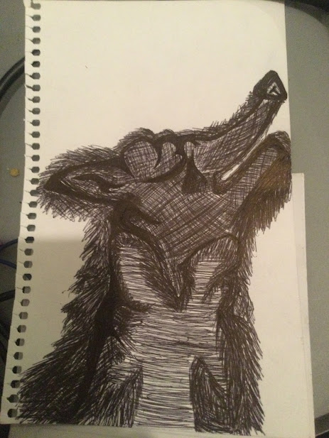 So the other day he stayed here again and he ended up drawing a wolf for me: