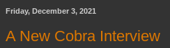 And as usual whenever I encounter some kind of cobra or snake in some form it indicates an update from Cobra’s blog is imminent. After seeing a thumbnail of a snake on YouTube I jotted this down and then the next day Cobra posted the interview post: