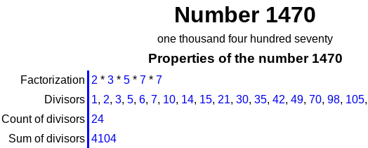 And the sum of the divisors of 1470 add up to 4104: