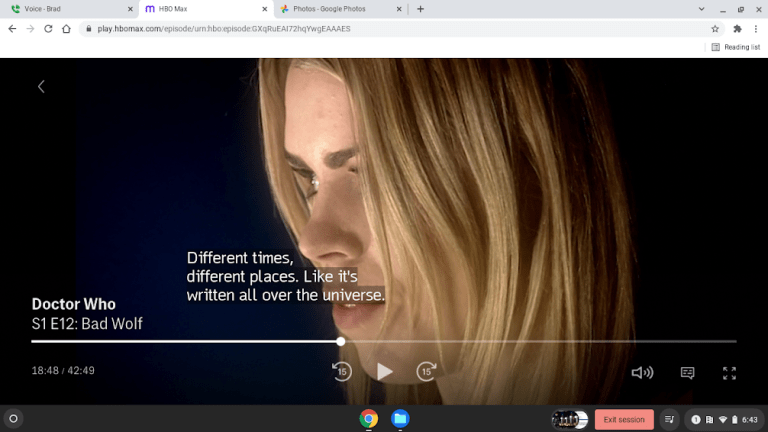 Her and the spaceship materializes where the Doctor is and ultimately saves the day but not before she explains that in an amazing time loop she creates herself and scatters the words ‘Bad Wolf’ throughout time and space as a message to herself which led her to the current moment.
