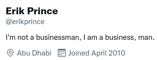 After doing a little research into Erik Prince I found the magic 410 appearing in connection to him. He created his alleged Twitter account in April 2010, so if the date was written out it would be 04/10: