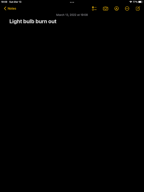 And the light bulb burning out happened March 13th, the day before I wrote the above screenshot about the lights being off: