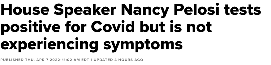 Some might recall that I had a dream where Nancy Pelosi made a strange appearance but without any context or anything. This was March 31st and interestingly, today, April 7th, it was announced that she tested positive for Co.vid: