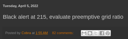 I don’t know if this next dream was of a personal nature or if it had to do with Cobra’s blog but on April 4th I saw a dead body buried in sand with the head sticking out which was covered with sand along with flies flying around. Then the next morning on April 5th Cobra posted a black alert coded message: