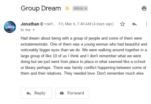 The next item of interest is a dream about being with a group of people and some of them were extraterrestrials: