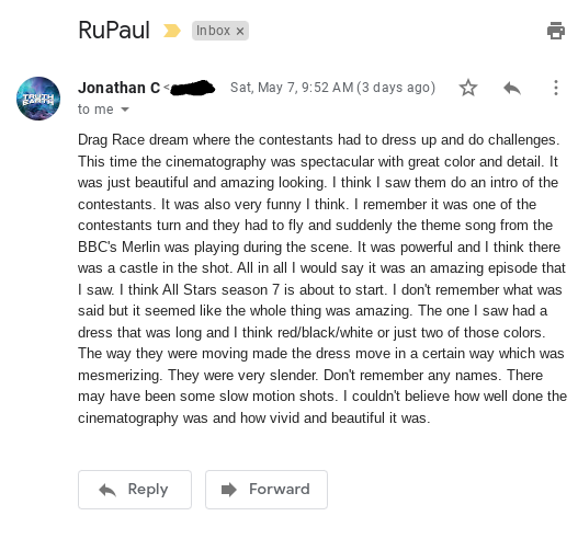 This next dream definitely won’t be for everyone but I decided to write it down because it seems prophetic. I think it might be about the upcoming season of one of RuPaul’s Drag Race shows called ‘All Stars’ which is set to premiere on May 20th which is 10 days from the time of this writing. This is where they take winners of previous contests and compete with each other and try to win first place. In the dream though there was a scene where the theme song from BBC’s ‘Merlin’ was playing and it was a powerful moment. I remember the cinematography was just incredible: