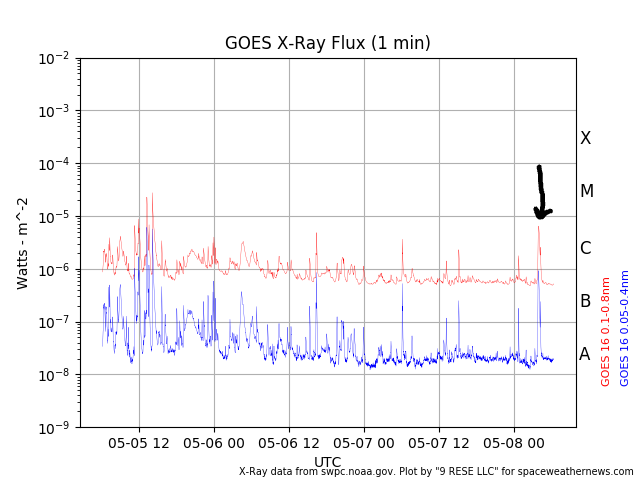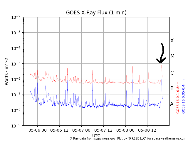 We had a few C-Class flares after that but we did have a big C8 on May 8th, a couple of days later: