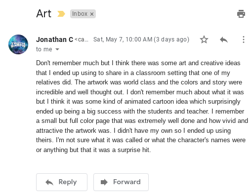 I don’t remember much about what it was but I think it was some kind of animated cartoon idea which surprisingly ended up being a big success with the students and teacher.