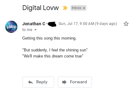 On July 17th I heard the song ‘Digital Love’ again and was guided to include the lyrics about the sun: