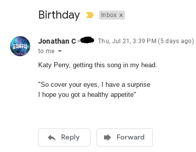 Additionally, the same day I got the Katy Perry song ‘Birthday’ in my head and this is a song they use when something good is about to happen. The email was documented at 3:39 PM. I would add here that the album this song is from is titled ‘Prism’ and the cover photo is of Katy Perry in a field of sunflowers (another reference to the sun) with a bright sun in the background: