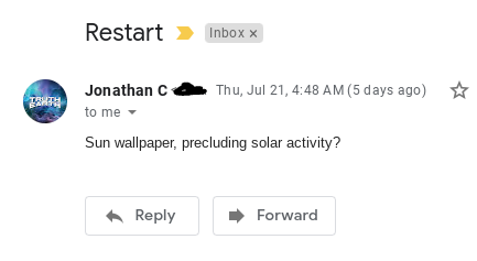 That morning I had restarted my computer and this has been happening to seemingly show me the sun wallpaper on the laptop just before some solar activity is about to happen:
