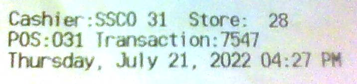 The number in the dream, 2048, is important because it turned out to be amazingly prophetic. The same day, July 21st, I went to the store and got a few things and ended up checking out at 4:27 PM. Apologies about the quality of the photo, I used the laptop webcam: