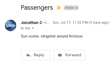 That evening I was strongly guided to buy the movie ‘Passengers’ which is about a group of people who are traveling through space to a new planet to start a new colony. Something goes wrong and one of the passengers is woken up in his stasis pod far too early, about 90 years too early. He decides to wake up a woman who he liked so he would have some company. Eventually they have a scene where they slingshot around the sun Arcturus: