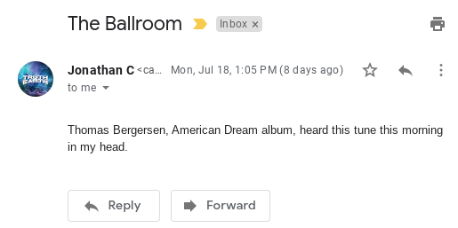 On July 18th I got the song ‘The Ballroom‘ in my head by Thomas Bergersen from his album titled ‘American Dream’: