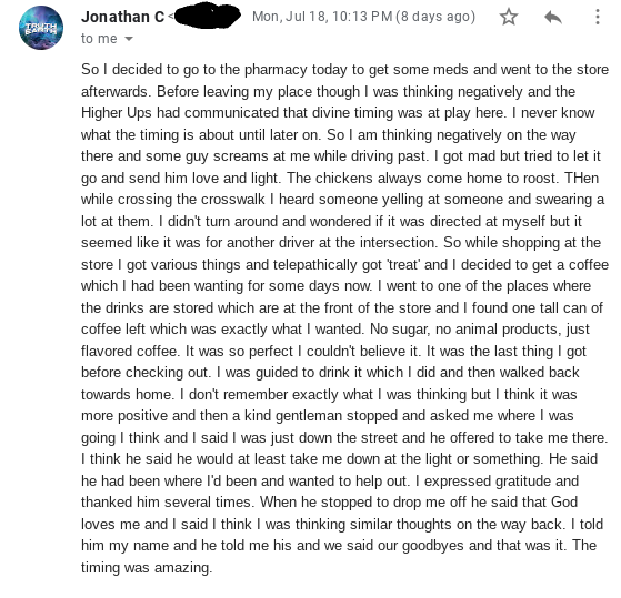 Another interesting communication seemed to indicate that The Source was sharing this information along with a positive message: