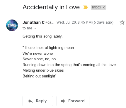 The night before, July 20th, I kept getting the song ‘Accidentally in Love‘ by Counting Crows in my head and was guided to include lyrics about lightning and sunlight. It seems this was another synchronicity which precluded solar activity: