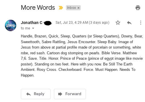 Another occurrence which might be a coincidence is that I have been getting spam emails in my inbox that are saying I’ve been chosen. This has happened a couple of times so far and I don’t know how those got past the spam filter because they were obviously spam. I deleted them but maybe I should have kept at least one to share here.