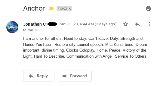 Here is the telepathic communication which happened the morning of July 23rd where I saw the above image of Jesus:
