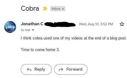And now for a prophetic Cobra dream which came true. The dream happened on August 10th and while I don’t understand all the details in the dream, it was still prophetic. I think there are details that are for Cobra to understand. Basically Cobra and I were hanging out and he was talking a lot more than usual. In other dreams he didn’t say much but this time he was a chatty Kathy: