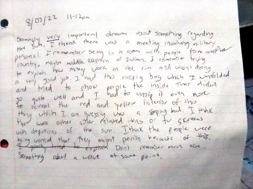 I know I’m doing things out of order here but I would like to share a prophetic dream regarding solar activity which came true but unfortunately I didn’t have a phone or laptop to document it so I wrote it down and guessed the time based on the shadow of the trees here (microwave was reset to zero after we lost power here):