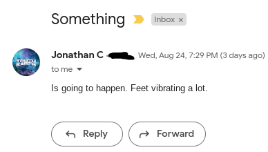 This first item will preclude the below synchronicities. My feet were vibrating like crazy on August 24th and I am learning that this is a sign that something is about to happen: